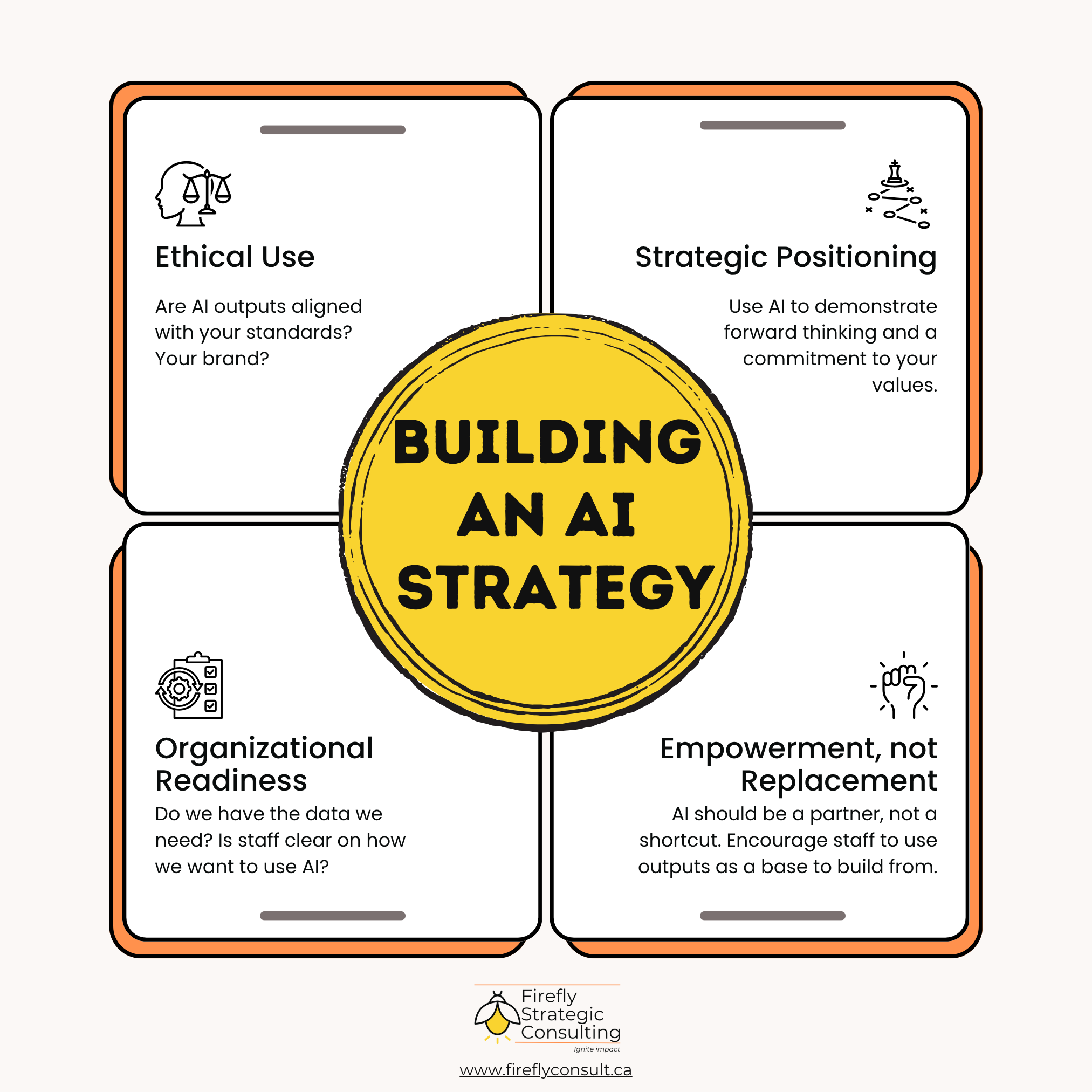 Many leaders are in the same headspace, grappling with how they want AI to work for them and their organization. Employees are no doubt already using AI tools for their daily work, and that’s a good thing. It shows initiative and a commitment to working efficiently. The challenge is that many are using AI without any organizational guidelines or framework that intentionally align AI use with your mission and values.